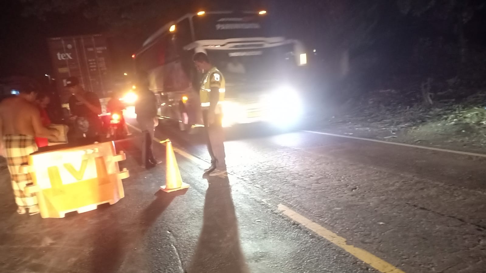 Tiba-tiba dari arah belakang, yakni arah utara ke selatan, melaju truk kontainer yang dikemudian oleh Ramadhan.